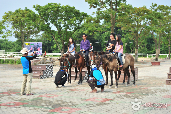 더馬파크는 세계 최초의 말 전문 테마공원이며, 승마와 기마공연 등 말의 고장 제주도에서 말에 관한 모든 것을 즐길 수 있게 한 곳이다. 2008년 첫 공연작 ''칭기스칸의 검은 깃발''을 시작으로 2013년 두번째 공연작인 ''천년의 제국 아! 고구려''까지 약 700만명의 관광객들이 관람을 했으며, 현재 "위대한 정복자 광개토태왕" 공연이 진행되고 있다.