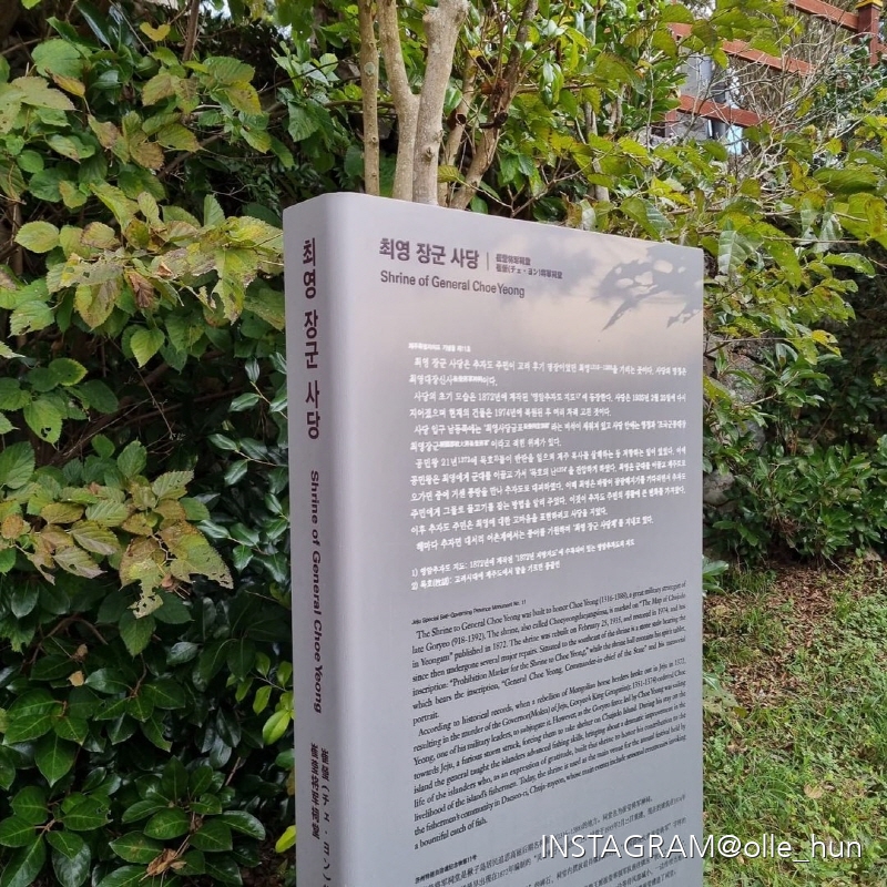 고려시대 명장 최영 장군이 잠시 추자도에 정박했을 때 주민들에게 어업 기술을 가르쳤다. 그 덕에 추자도 주민들은 어업으로 생계를 이어갔고 그 은혜를 기리기 위해 세운 사당이다.